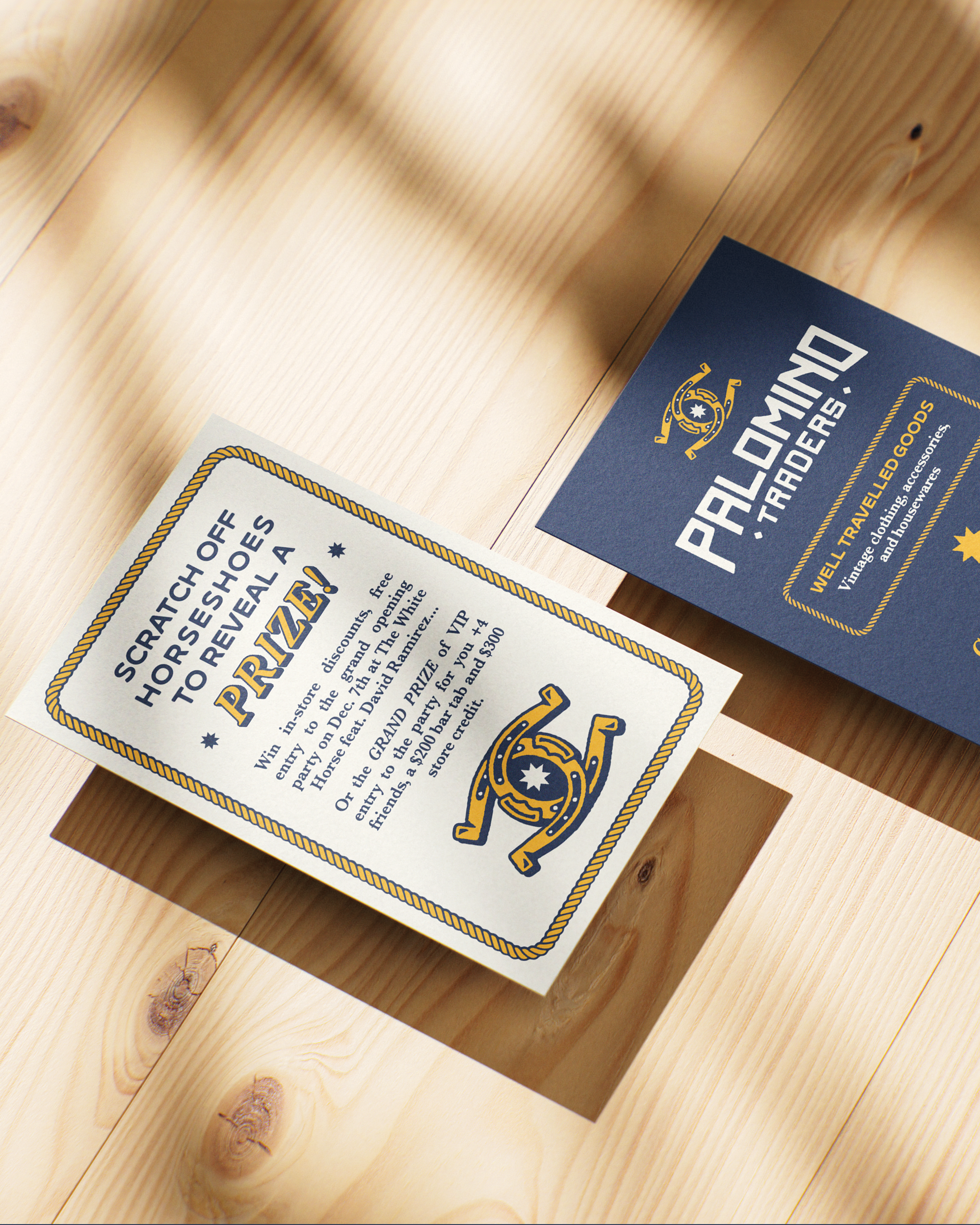 Well-traveled Goods: I collaborated with Palomino Traders to develop a brand identity rooted in the owner’s upbringing as a barrel-racing horse rider and her deep connection to the American West. Drawing inspiration from historic trading posts, the identity reflects a sense of grit, nostalgia, and authenticity while supporting a modern retail experience. Palomino Traders specializes in high-quality vintage and operates a brick-and-mortar shop on East 5th Street in Austin, Texas, where heritage and contemporary style meet.